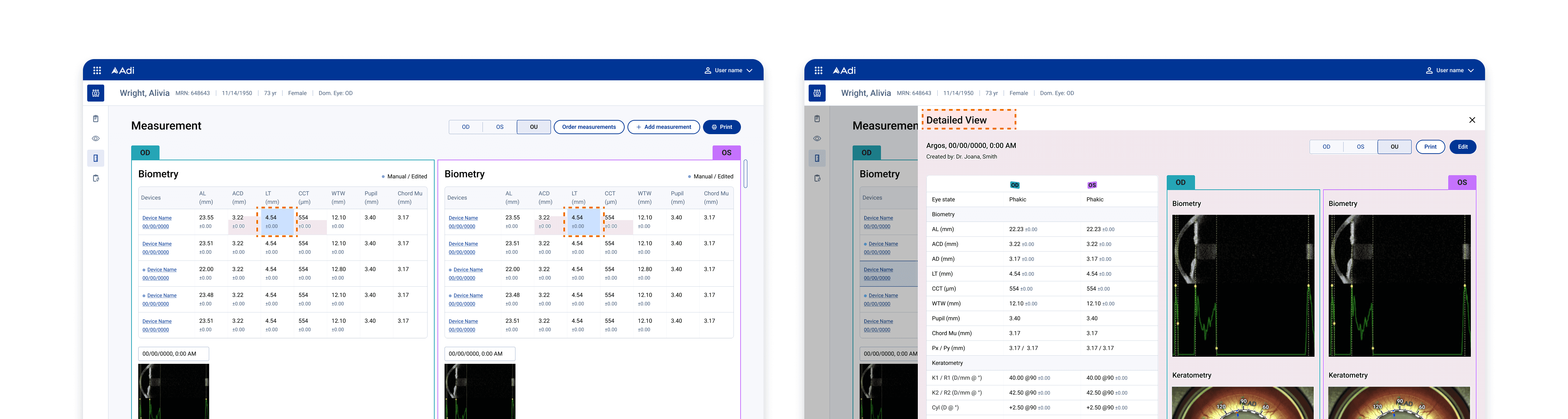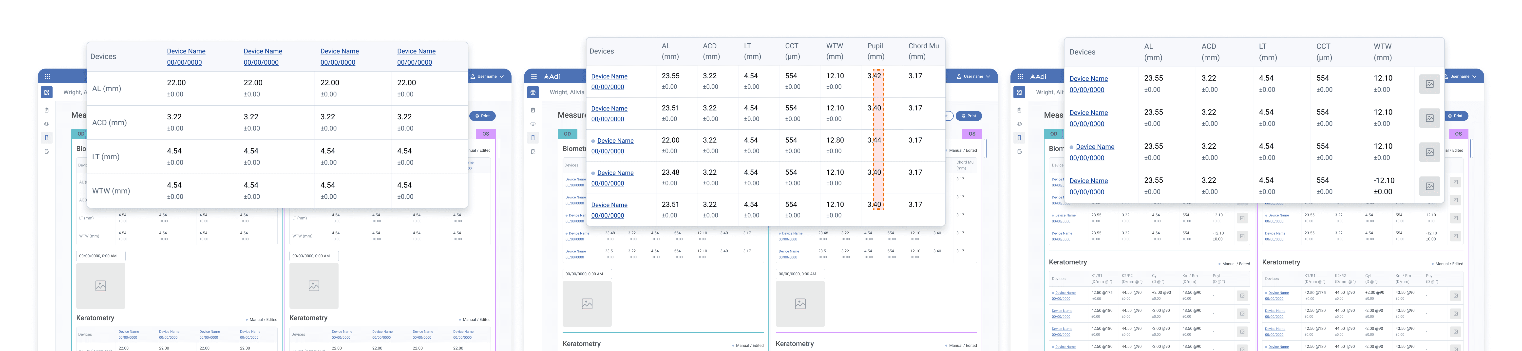 This made inconsistencies immediately visible and significantly reduced cognitive load. As a result, clinicians could validate OD or OS measurements across devices at a glance, even in fast-paced surgical settings.