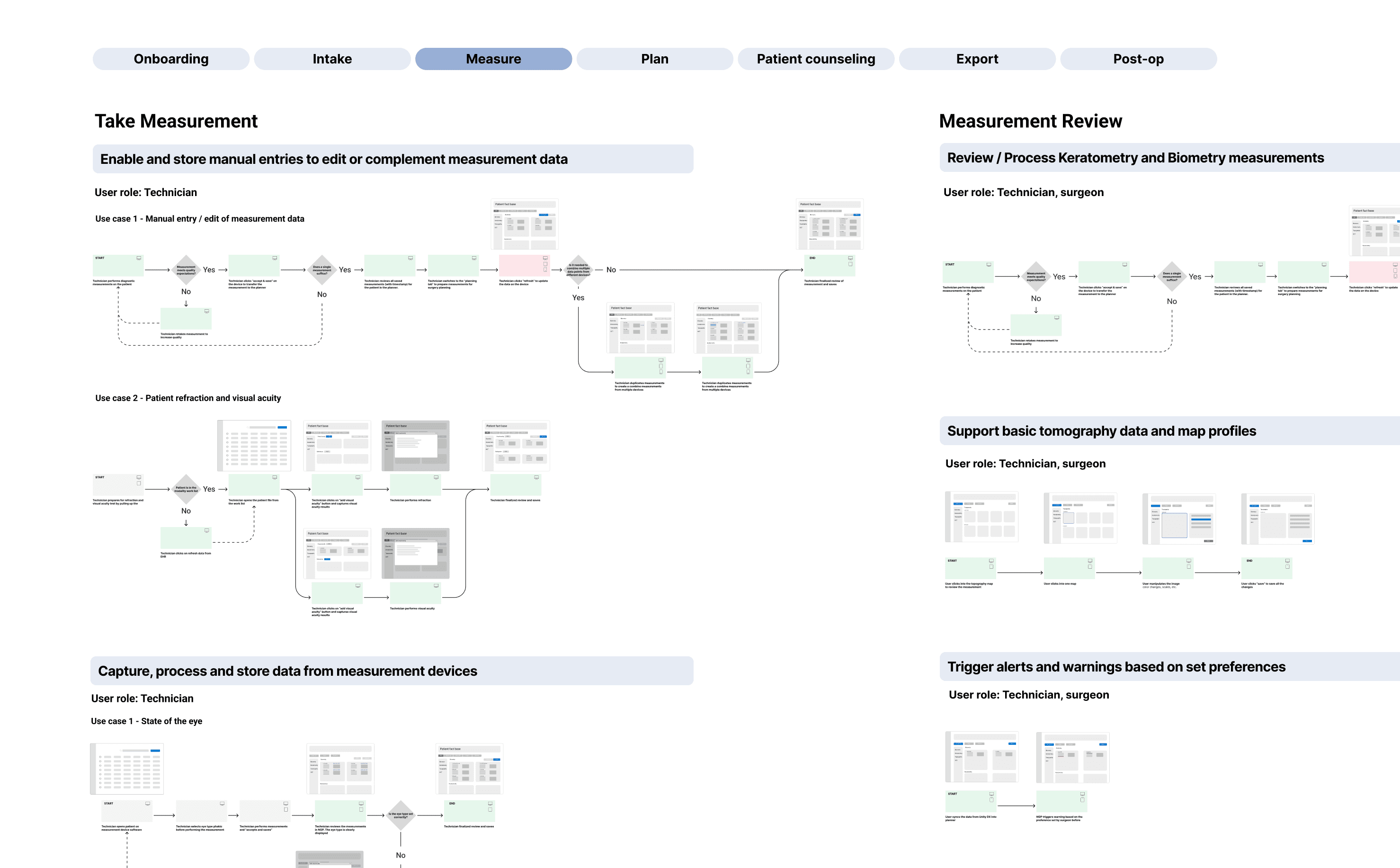 Surgical experts were invited to sketch their ideal tools for each key step of the workflow—what information they needed, how they wanted to compare data, and what would reduce cognitive effort in the moment. I translated these sketches into: